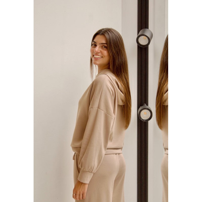 50% poliéster, 45% viscosa y 5% elástico.